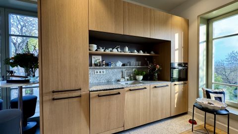 A ház télen padlófűtéssel és cserépkályhával biztosítja a kellemes meleget, nyáron pedig klíma és zsalugáterek gondoskodnak a hűvös belső hőmérsékletről.